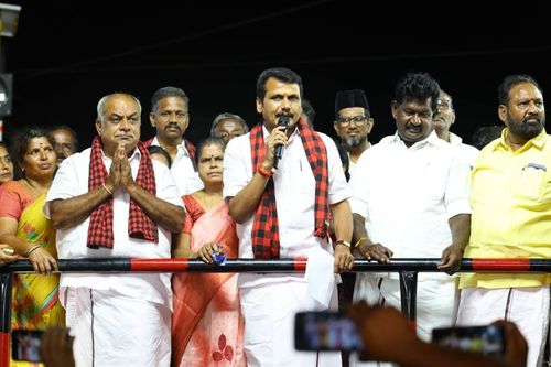 கரூர் மாவட்டம், கரூர் அரசு காலனி பகுதியில் நடைபெற்ற தேர்தல் பிரச்சார கூட்டத்தில், மாண்புமிகு V.செந்தில்பாலாஜி அவர்கள், கரூர் சட்டமன்ற தொகுதி வெற்றி வேட்பாளர் த...